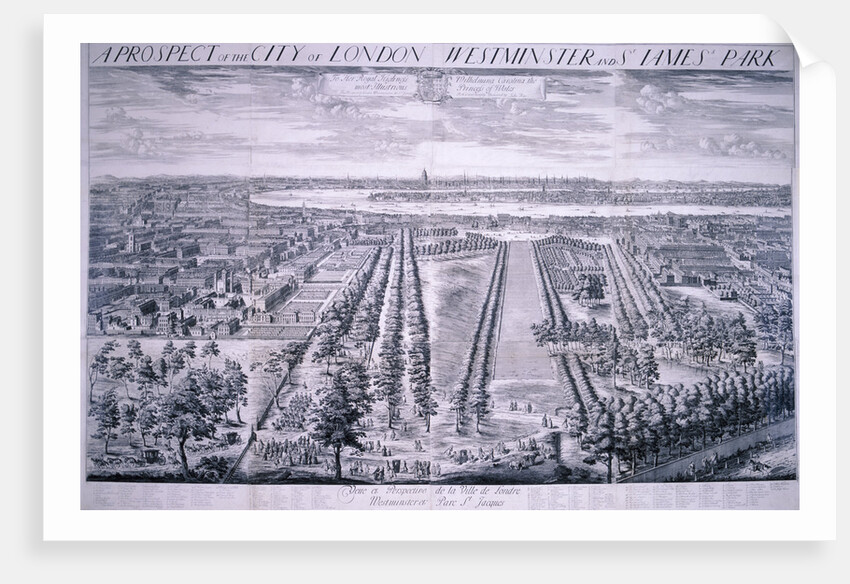 Panoramic view of the City of London and Westminster from Buckingham House showing St James's Park in the foreground, 1720.