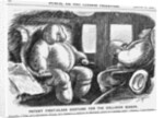 'Patent First-Class Costume for the Collision Season', 1876. Travel by train was a risky business in the 1870s and collisions were not uncommon. The two men in this cartoon are well prepared for any eventuality. This was a regular topic in Punch as the journal often highlighted the lack of proper investment in the country's railway network. From Punch, or the London Charivari, August 19, 1876.
