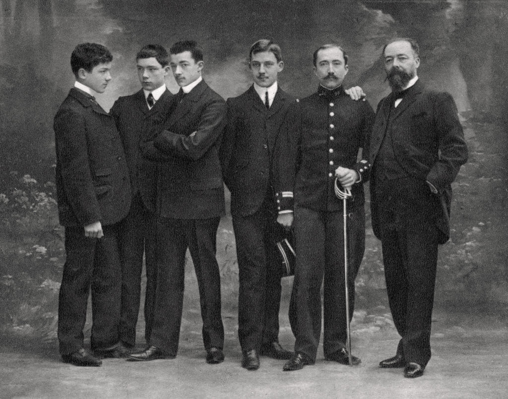 Paul Doumer, French statesman, 1908. Doumer (right) with his five sons, four of whom were killed in the First World War. He served as Governor-General of French Indochina from 1897-1902. On his return to France Doumer was President of the Chamber of Deputies from 1902-1905. He was elected President of France in 1931 but was assassinated the following year. A photograph from Album de Photographies dans L'Intimite de Personnages Illustres, 1855-1915, 8th album, Editions MD, Paris.