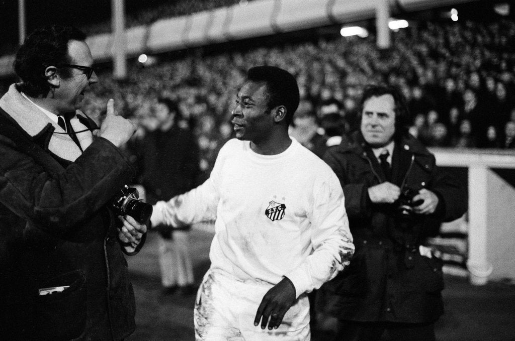 Brazilian footballer Edson Arantes do Nascimento, more famously knows as Pele, pictured during the match for his team Santos against Aston Villa during their visit to Birmingham. February 1972