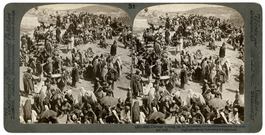 People coming up tp Jerusalem for sacrifice, outside the eastern wall, 1900. From a series called Travelling in the Holy Land Through the Stereoscope, by Jesse Hurlbut.