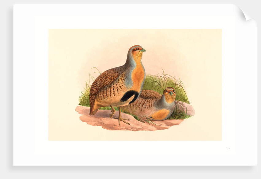 Perdix Barbata (Daurian Partridge), Colored Lithograph