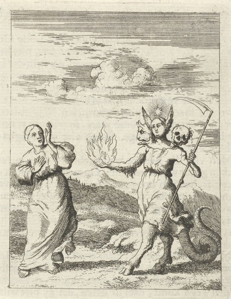 Personified soul meets Sin, Jan Luyken, Pieter Arentsz (II), 1678 - 1687
