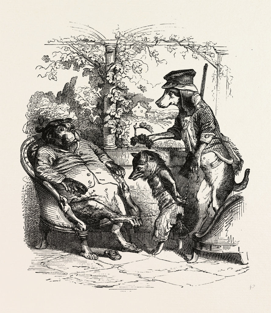 Picking the Grapes, Fox, Dog, 19th Century, Liszt Gourmet Archive
