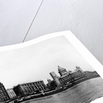 The Pier Head, a riverside location in the city centre of Liverpool, Merseyside England. It is part of the Liverpool Maritime Mercantile City UNESCO World Heritage Site. A trio of landmarks collectively known as The Three Graces, and comprising of Royal Liver Building, Cunard Building and Port of Liverpool Building. 6th October 1959.