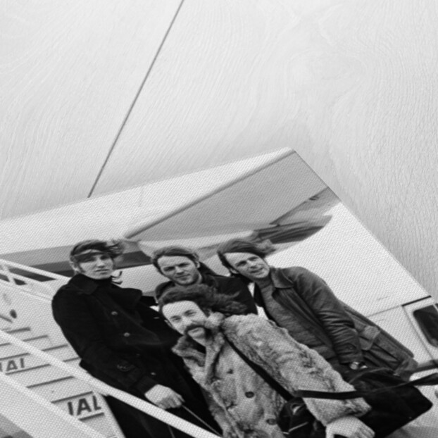 A Japan Air DC-8 jet airliner has been chartered by the British progressive music group Pink Floyd to take the group and their equipment to Japan for a 12 day tour of major cities. The group, Nicholas Mason, Roger Waters, Richard Wright and David Gilmore, together with 16 members of their company, will have the 114 seat aircraft to themselves for the 17 hour flight over the North Pole to Tokyo via Anchorage. 3rd March 1972.