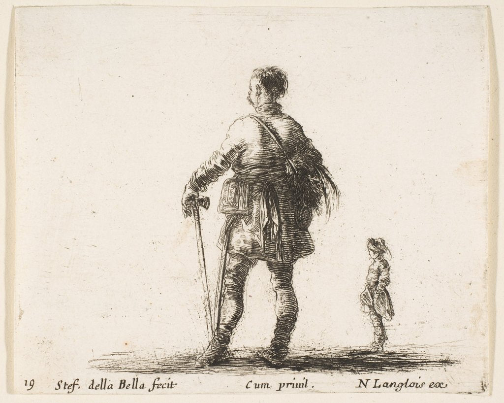 Plate 19: a Polish nobleman in court dress, standing in center, seen from behind, a…, ca. 1644-47