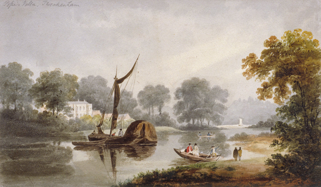 Pope's Villa, Twickenham, Middlesex, c1820. View with boats and passengers on the River Thames. This was the home of the poet Alexander Pope (1688-1744). Twickenham is now in the London borough of Richmond upon Thames.