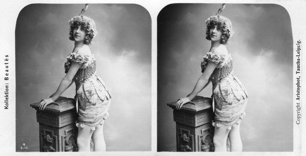 Portrait of a costumed woman, early 20th century. Stereoscopic slide.