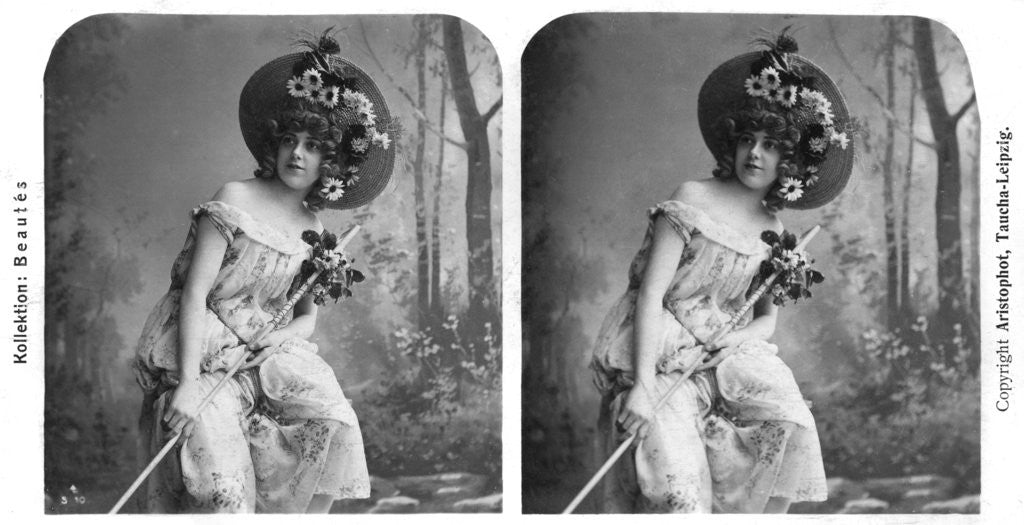 Portrait of a costumed woman, early 20th century. Stereoscopic slide.
