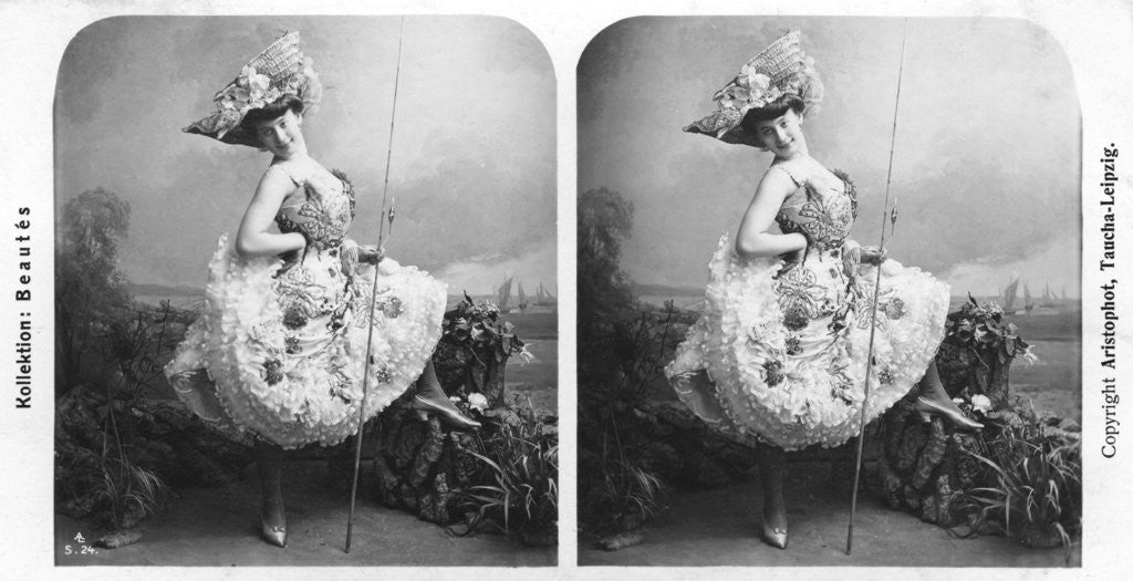 Portrait of a costumed woman, early 20th century. Stereoscopic slide.