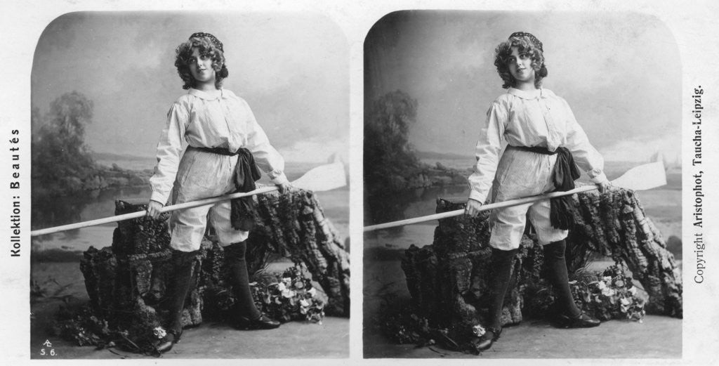 Portrait of a costumed woman, early 20th century. Stereoscopic slide.