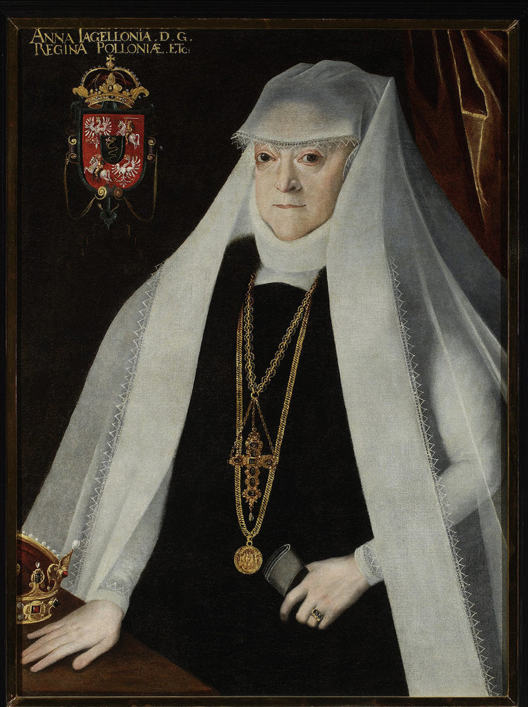 Portrait of Anna Jagiellon (1523-1596), queen of Poland, before 1596. Found in the Collection of Muzeum Narodowe, Warsaw.
