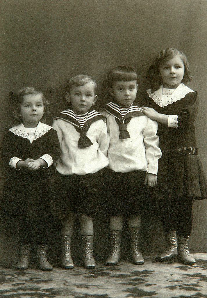 Portrait of four children, 1910s. Found in the collection of the State Museum of History, Moscow.