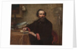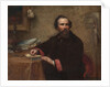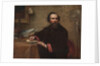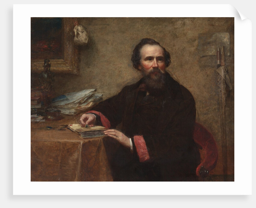 Portrait of Genio C. Scott, 1859. Johnson painted this portrait soon after settling in New York. He had spent much of the previous decade studying at the esteemed art academy in Düsseldorf, Germany, followed by an extended stay in Holland and a briefer visit to France. Scott was a highly successful fashion illustrator and publisher, but his true passion was fly-fishing, which he regarded as "one of the highest enjoyments in life." Details in his portrait reveal his attachment to the sport: two fishing poles lean on the wall at the right; three tied flies lie on the table at the left, and a fourth is held in his hand.