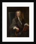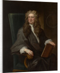Presented by Martin Folkes, date unknown. Three-quarter length portrait of the 84-year old Newton, wearing a wig and seated in a high-backed green chair with scrolled wooden arms. The sitter is looking away from a tan calf-bound book held upon his knee in a reading position. Newton is dressed in a loose olive-coloured robe, with white neck-cloth and shirt cuffs. An ouroboros [a snake holding its own tail in its mouth] can be seen to the right of the picture. Isaac Newton was elected a Fellow of the Royal Society in 1672, he served as its President from 1703 to 1727.
