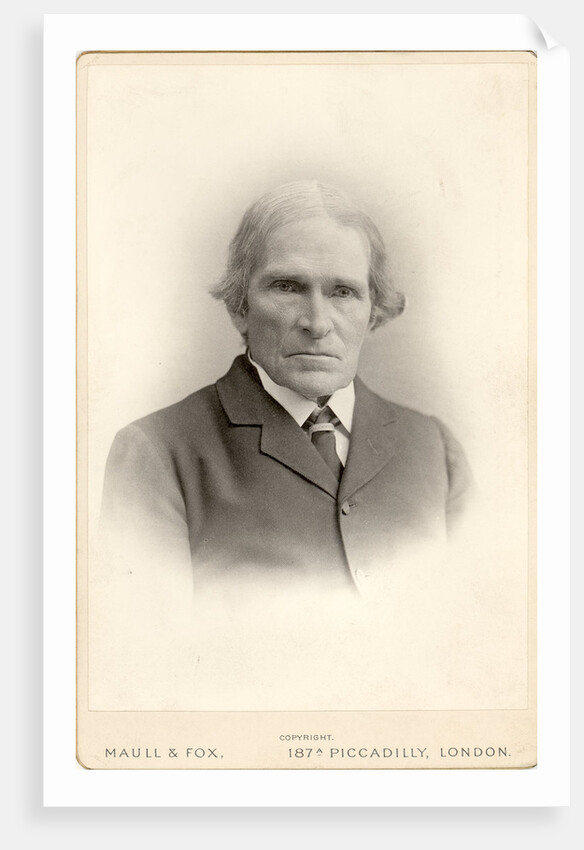 Formal photographic portrait of John Scott Burdon-Sanderson, head and shoulders, full face. Inscription on card reads: 'MAULL & FOX 187A PICCADILLY, LONDON' Burdon-Sanderson became Medical Officer of Health for Paddington in 1856 and, in 1860, he was appointed physician to the Middlesex and the Brompton Consumption hospitals. Burdon-Sanderson conducted research in cholera, diptheria and penicillium. Burdon-Sanderson was elected a Fellow of the Royal Society in 1867.