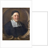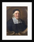 Half-length portrait of Ball wearing a black skullcap, black robe and white squared collar. The sitter is white-haired and has a small beard and moustache. In a painted oval with an acanthus motif. Peter Ball was elected a Fellow of the Royal Society in 1663.