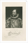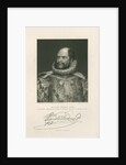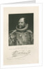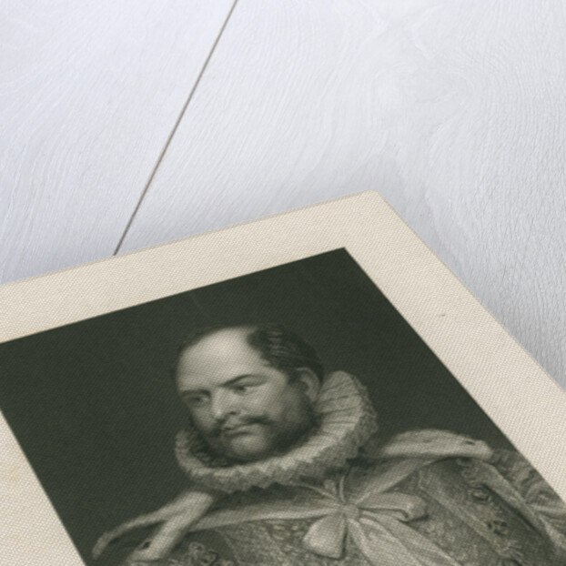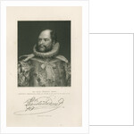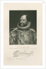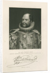 Half length portrait, bearded. Dressed in royal court robes, including a ruff at the neck. Inscribed: 'From an enamel by Jas. Lee. û Painted by Thos. Phillips Esq., R.A. Engraved by H.Robinson [fl.1827-1872]. HIS ROYAL HIGHNESS PRINCE AUGUSTUS-FREDERICK, DUKE OF SUSSEX, &c. K.G.-K.T.-G.C.H.-P.R.S. &c. &c. FISHER, SON & Co, LONDON, 1833.' With a specimen signature. In pencil lower left '1828' and lower right '1/-'. The Duke of Sussex was elected a Fellow of the Royal Society in 1828, he served as its President from 1830 to 1838.
