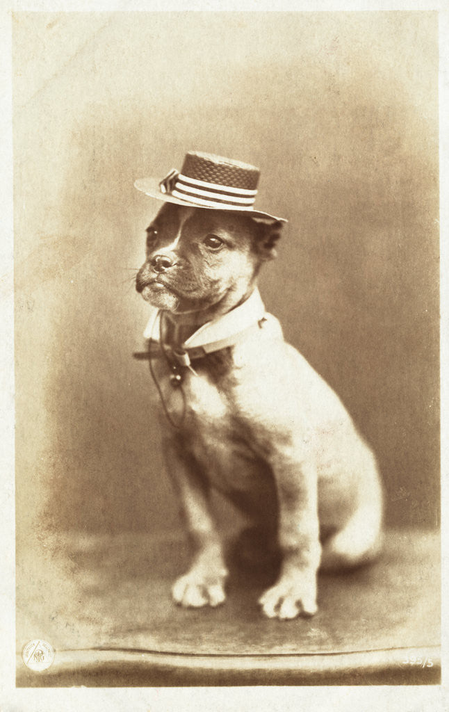 Postcard of a Boxer Puppy Wearing a Brimmed Hat