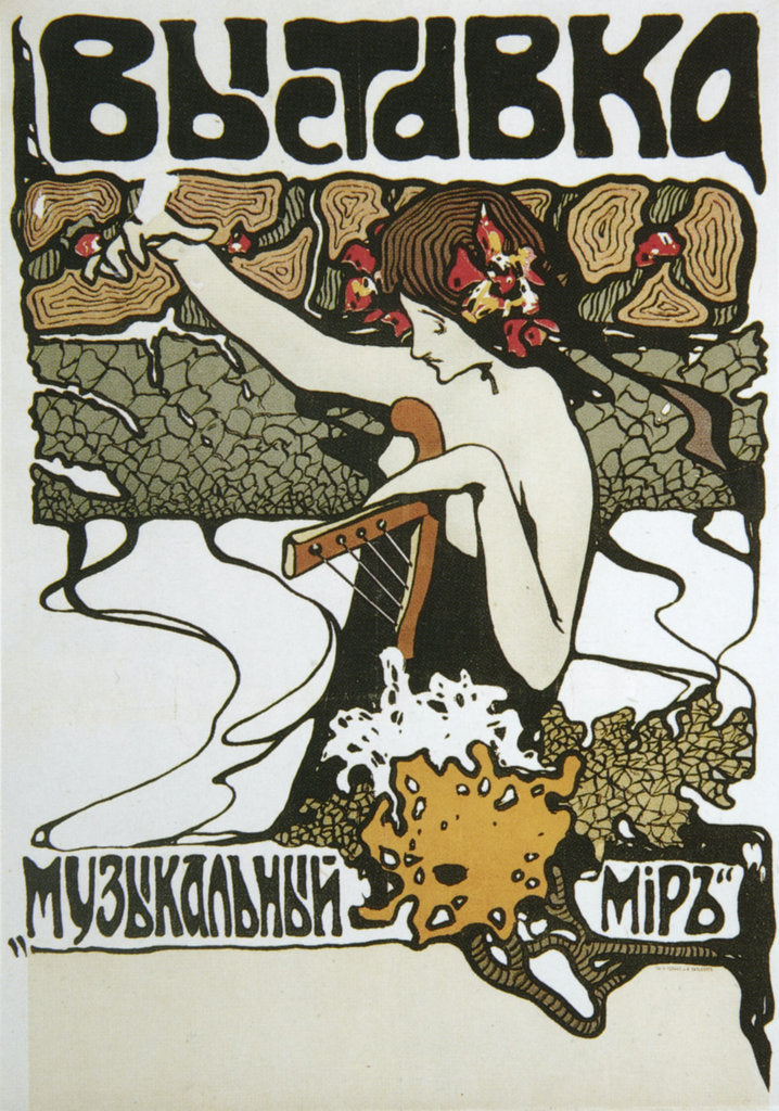 Poster for the Music World exhibition, 1907. Found in the collection of the State Museum of History, Moscow.