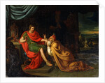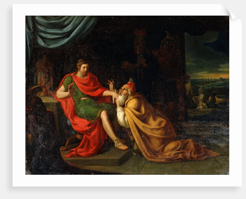 'Priam and Achilles', 17th century. Priam, King of Troy, pleading with Achilles for the return of the body of his son, Hector, who Achilles killed in combat. Found in the collection of the Far Eastern Art Museum, Khabarovsk, Russia.