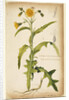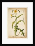 Botanical study of prickly sow-thistle with jagged leaves (Sonchus asper laciniatus). With flower details.
