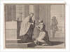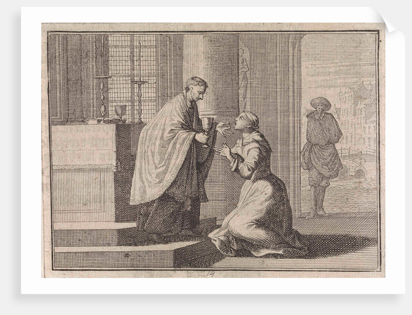 Priest gives a host to a woman kneeling before the altar, Caspar Luyken, Christoph Weigel, Frantz Martin Hertzen, 1710
