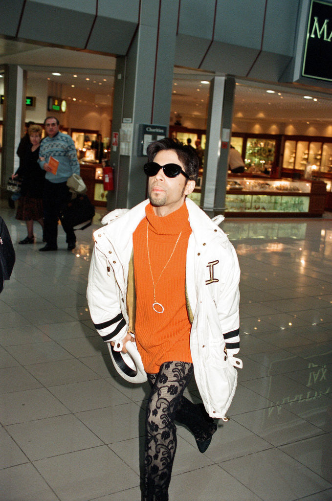 American pop star, the artist formerly known as Prince, leaving Heathrow Airport for New york on concorde. 19th June 1997.
