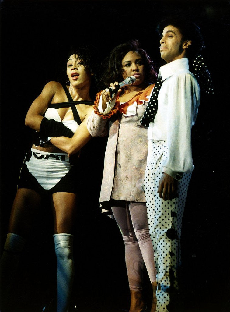 Prince Musician Pop Star on stage performing with backing singers and dancers in concert at Wembley Arena. 25th July 1988.