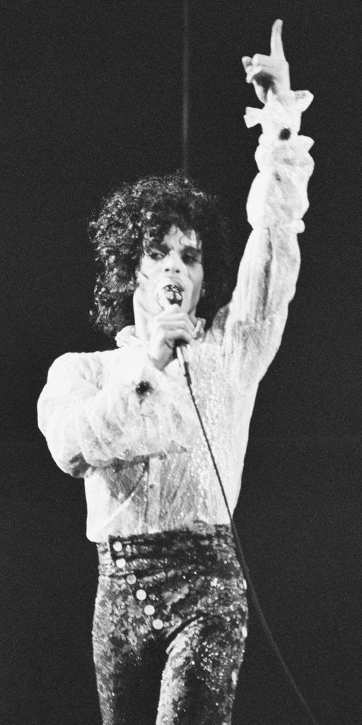 Prince performing on stage at the Joe Louis Arena, Chicago 11th November 1984. The Purple Rain Tour