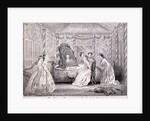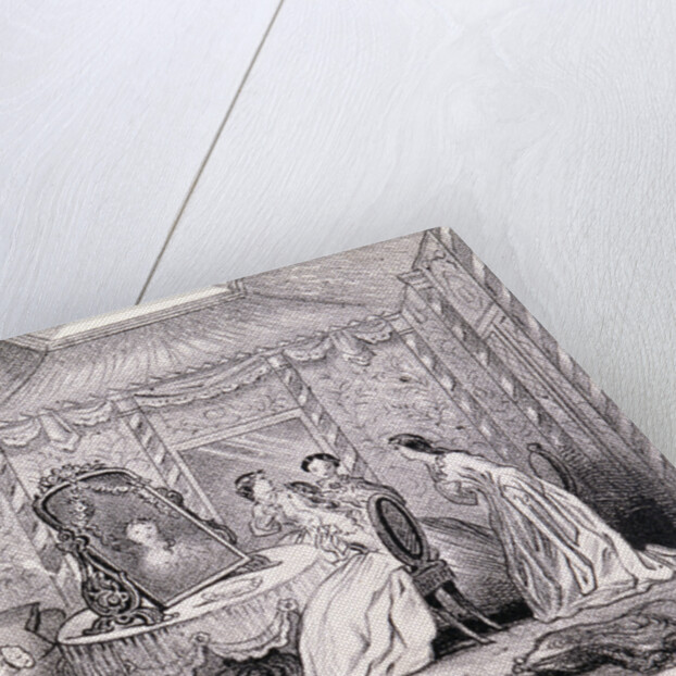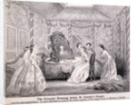 Princess Alexandra preparing for her wedding ceremony, 1863. The Princess is sitting in front of a mirror in her temporary dressingroom at St George's Chapel, Windsor Castle, attended by maids in waiting.