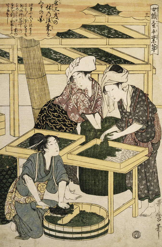 Print Depicting Women Cutting Mulberry Leaves from Silkworm Culture by Women