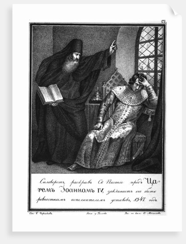 Protopope Silvester before Ivan the Terrible. 1547 (From Illustrated Karamzin), 1836. Found in the collection of Russian State Library, Moscow.