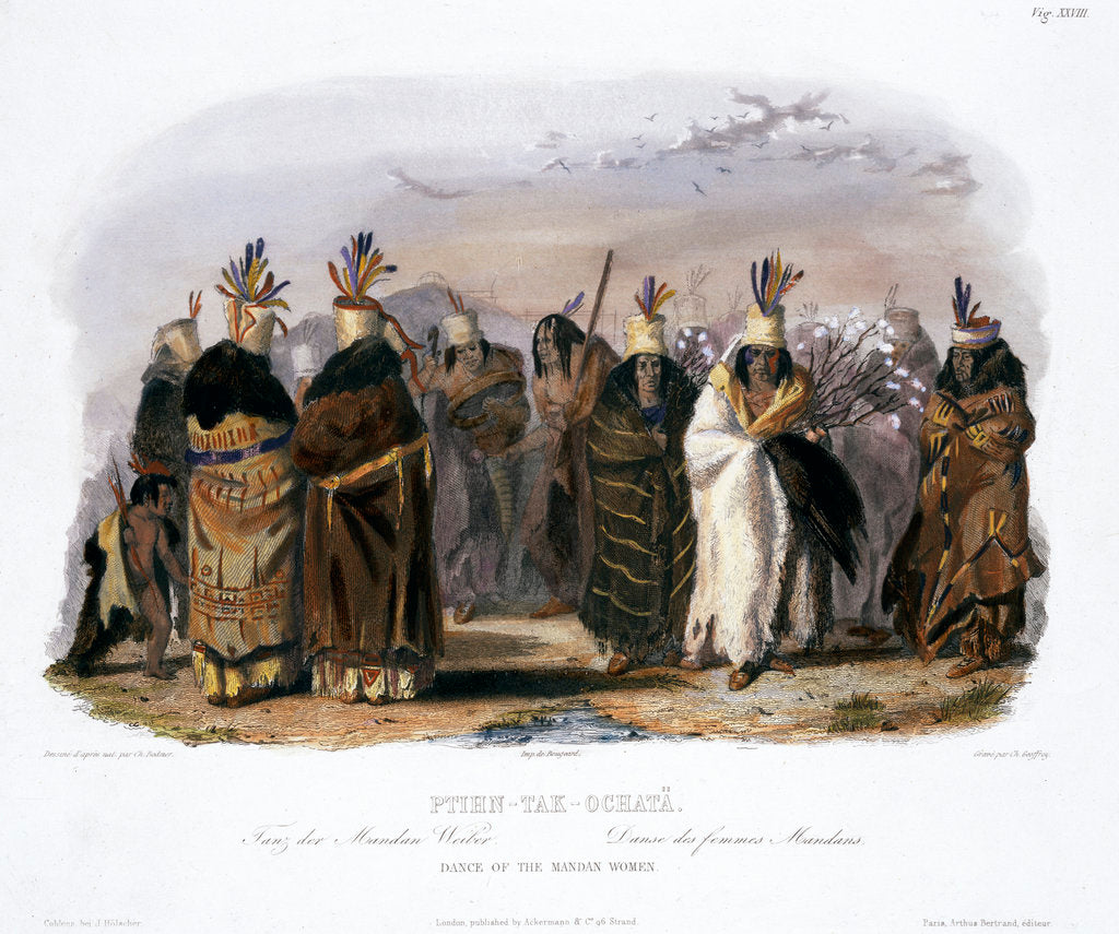 'Ptihn-Tak-Ochata, Dance of the Mandan Women', 1843. Plate 28 from volume 1 of Travels in the Interior of North America, 1843.