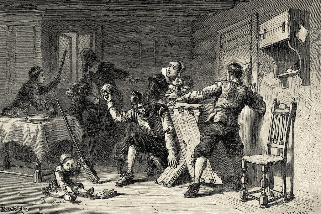 Product details Puritans Barricading their House Against Indians