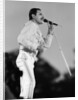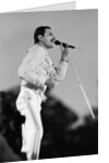 Rock group Queen in concert at Knebworth pop festival. Lead singer Freddie Mercury performing on stage. 9th August 1986.