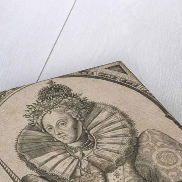 Queen Elizabeth I wearing a crown and holding and orb, c1650. Portrait of Queen Elizabeth I with a Latin inscription below.