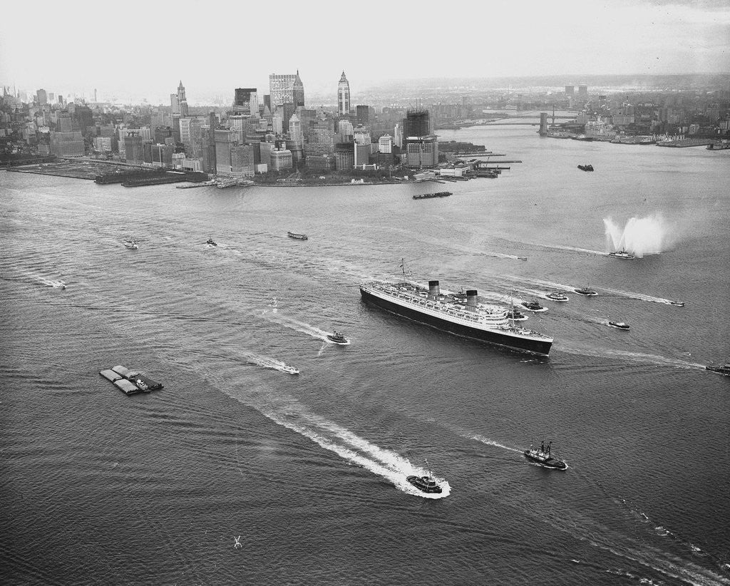 Product details Queen Elizabeth Sailing Through New York Harbor