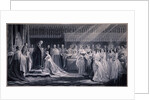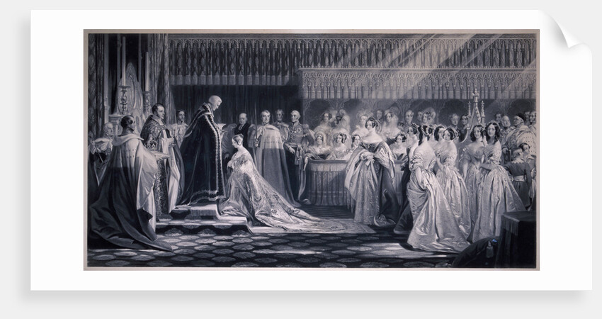 Scene of Queen Victoria receiving the Sacrament at her coronation in Westminster Abbey, London, 1838.