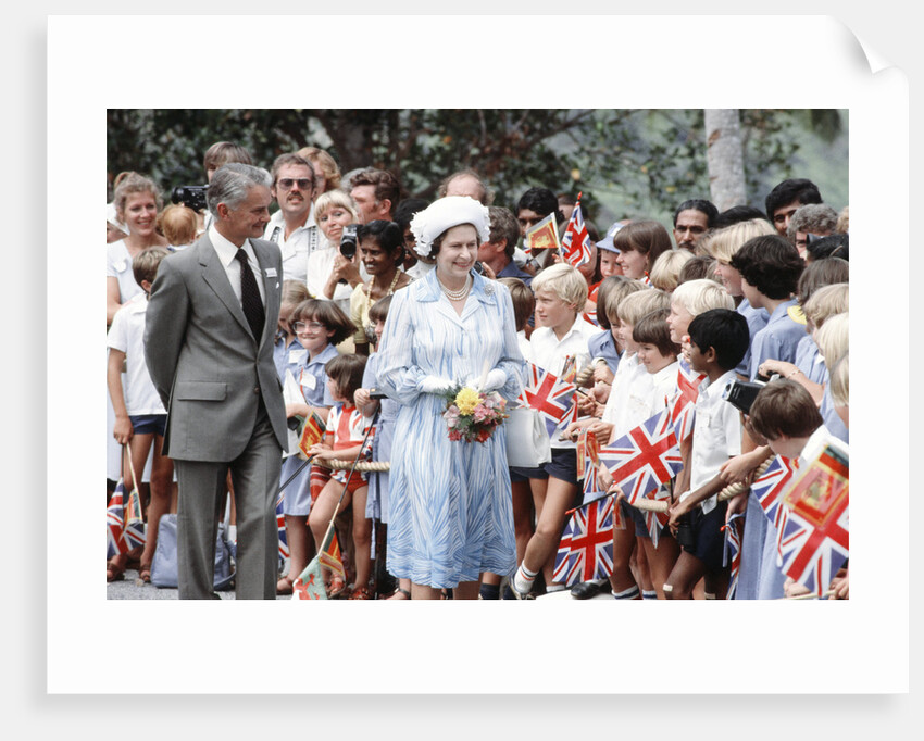 Royal Visit of Queen Elizabeth II and Prince Philip, Duke of Edinburgh to Sri Lanka at the end of their tour of Australasia. Pictured: The Queen greeting crowds of people who gathered to welcome her. October 1981.