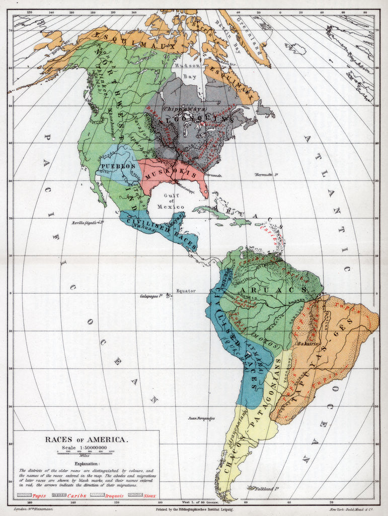 Races of America, 1901. A print from The World's History, A Survey of Man's Record, Volume I, William Heinemann, London, 1901.