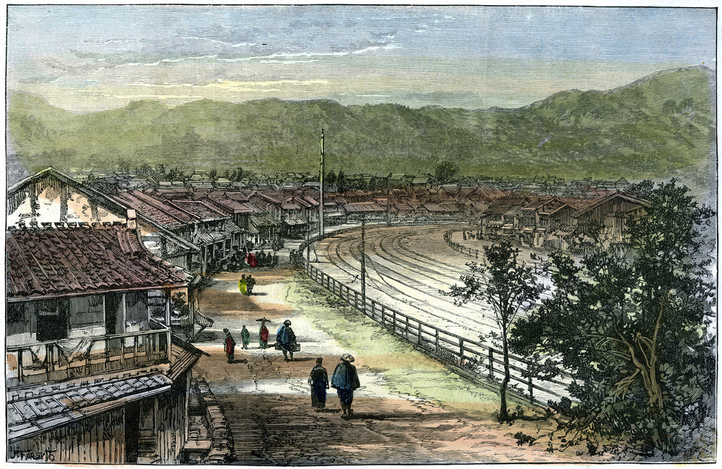 Railway line near Kobe, Japan, 1891. A print from The Illustrated London News, 21st November 1891.