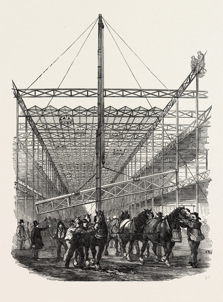 Raising the Girders of the Central Aisle of the Crystal Palace, the Great Exhibition, London