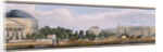 Panoramic view of the area around Regent's Park, London, 1831; showing the Colosseum, the Clergy Orphan School, St Andrew's Place and Park Square East, with figures, horses and carriages in the foreground.