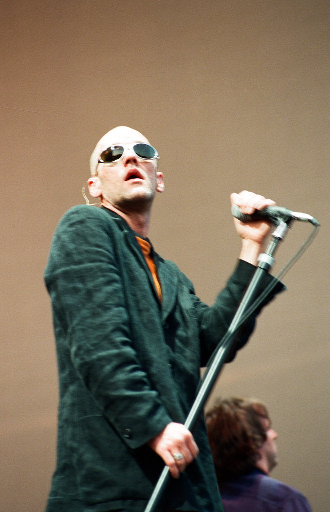 Michael Stipe, R.E.M. in concert at the Galpharm Stadium. 25th July 1995.