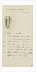 Drawing of Remopleurides, a genus of trilobite, with annotations. Taken from a notebook by Henry James.