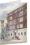 Residence of Titus Oates, Oat Lane, City of London, 1845. View with figures in mid 18th century costume.