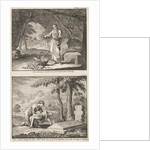 Resurrection of a dead child and a woman bringing her dead child to the tomb of Saint Stephen, print maker: Jan Luyken, Jacobus van Hardenberg, Barent Visscher, 1701