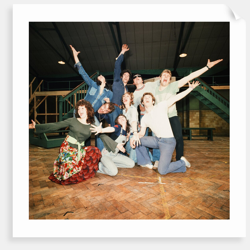 Richard Gere (centre denim shirt) as Danny Zuko seen here in rehearsal with the rest of the cast of Grease at a undisclosed rehearsal room in London, prior to their tour of the provinces before the show hits the West End stage. 24th May 1973